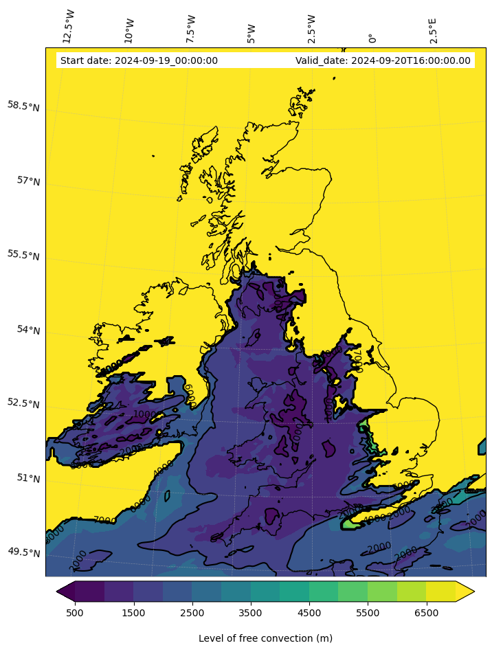 - Level of free convection (m)