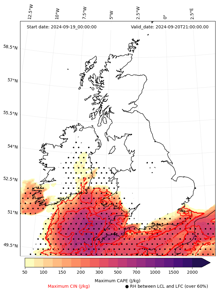 - Maximum CAPE (J/Kg)