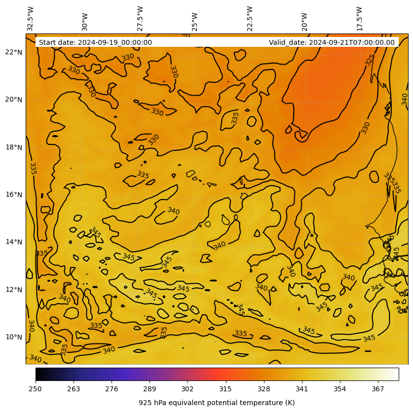 - Equivalent Potential Temperature (K)