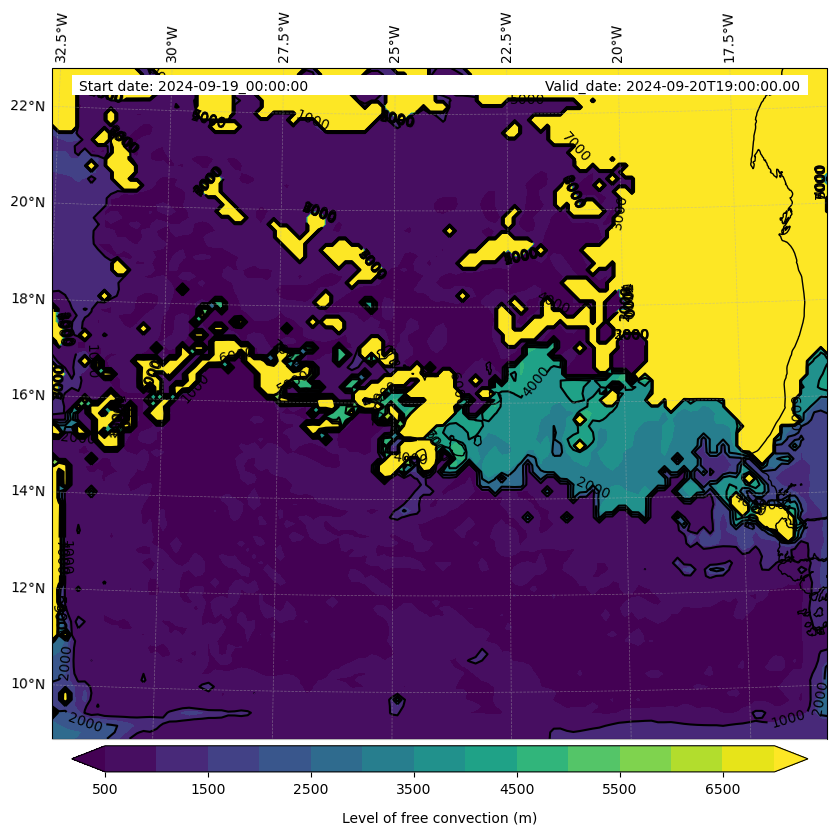 - Level of free convection (m)
