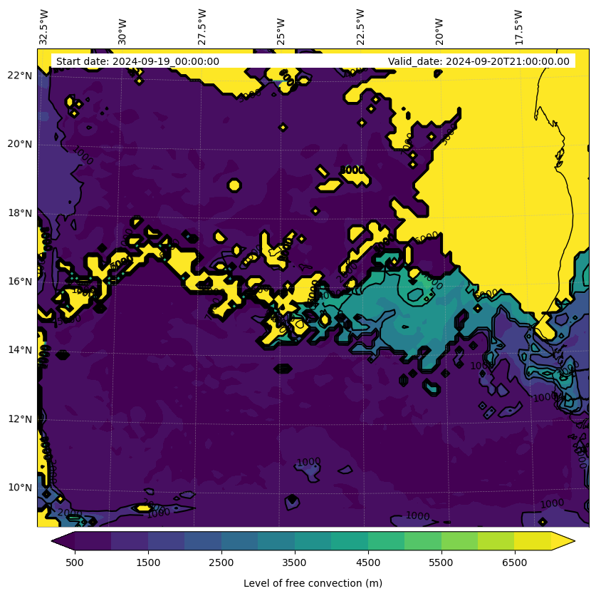- Level of free convection (m)