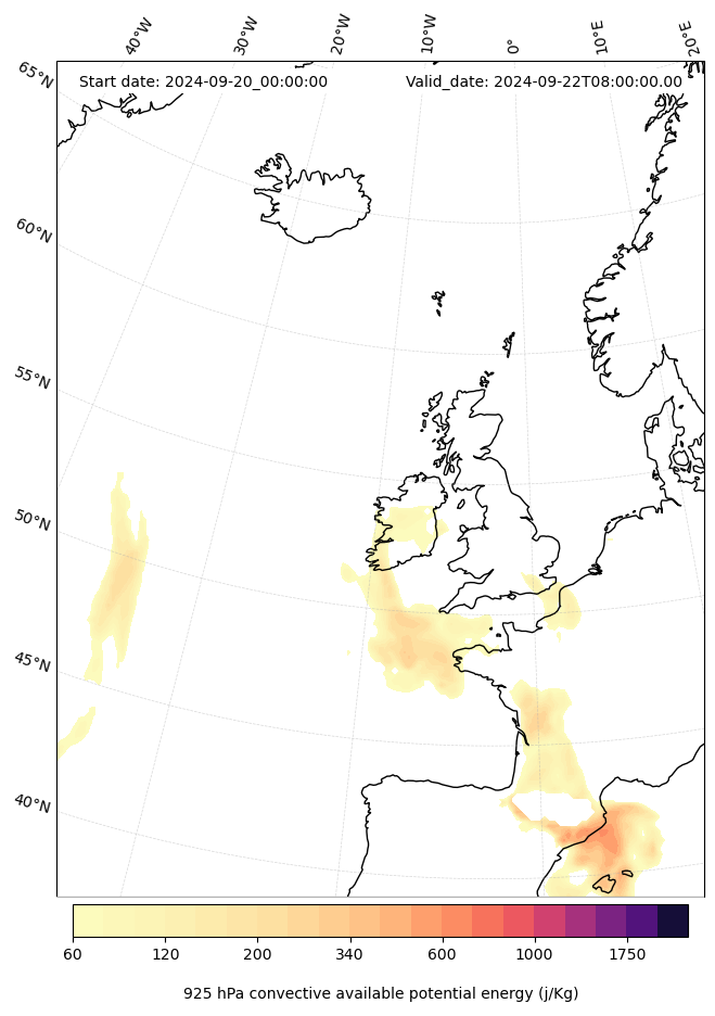 - Maximum CAPE (J/Kg)