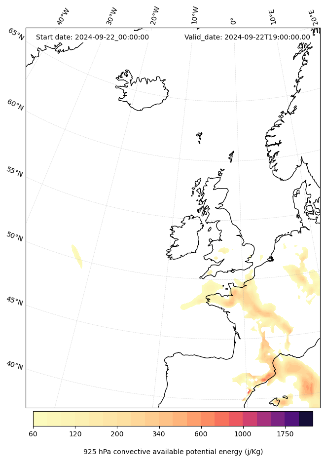 - Maximum CAPE (J/Kg)