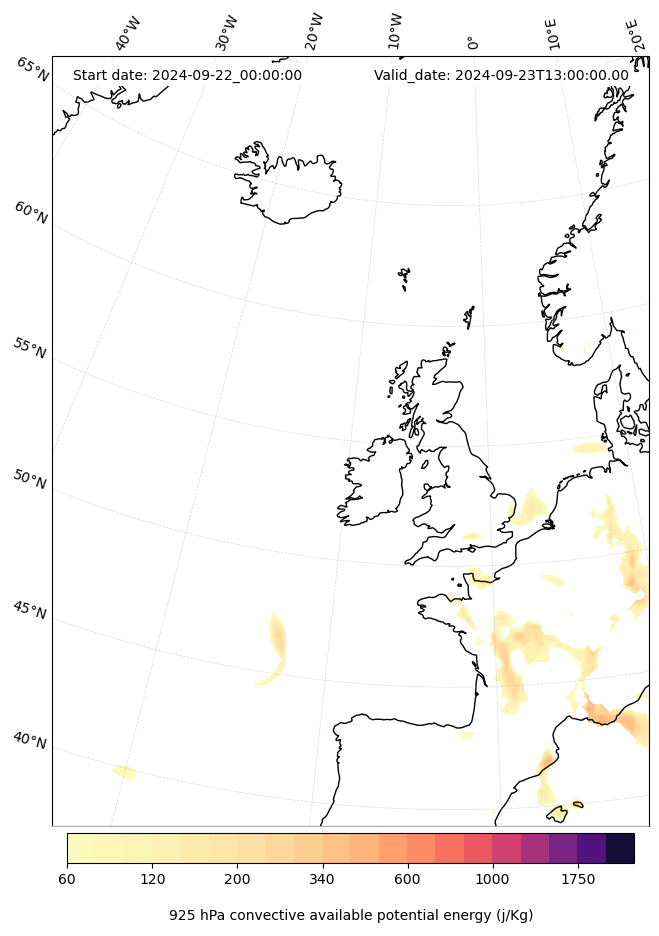 - Maximum CAPE (J/Kg)