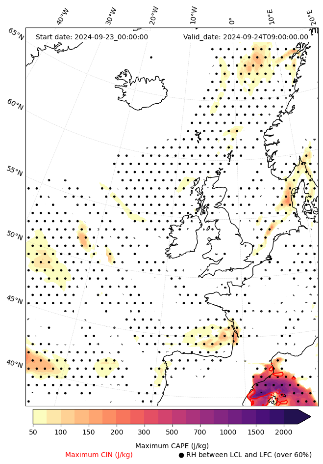 - Maximum CAPE (J/Kg)