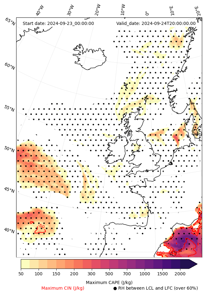- Maximum CAPE (J/Kg)