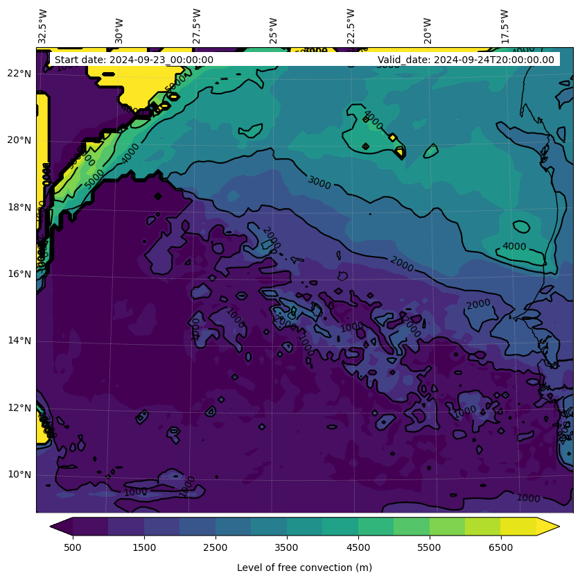 - Level of free convection (m)