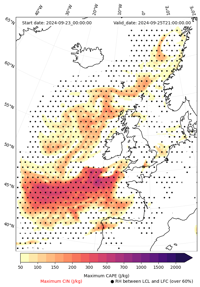 • Maximum CAPE (J/Kg)