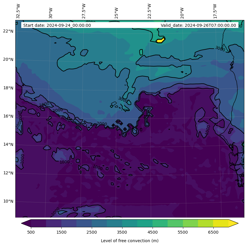 - Level of free convection (m)