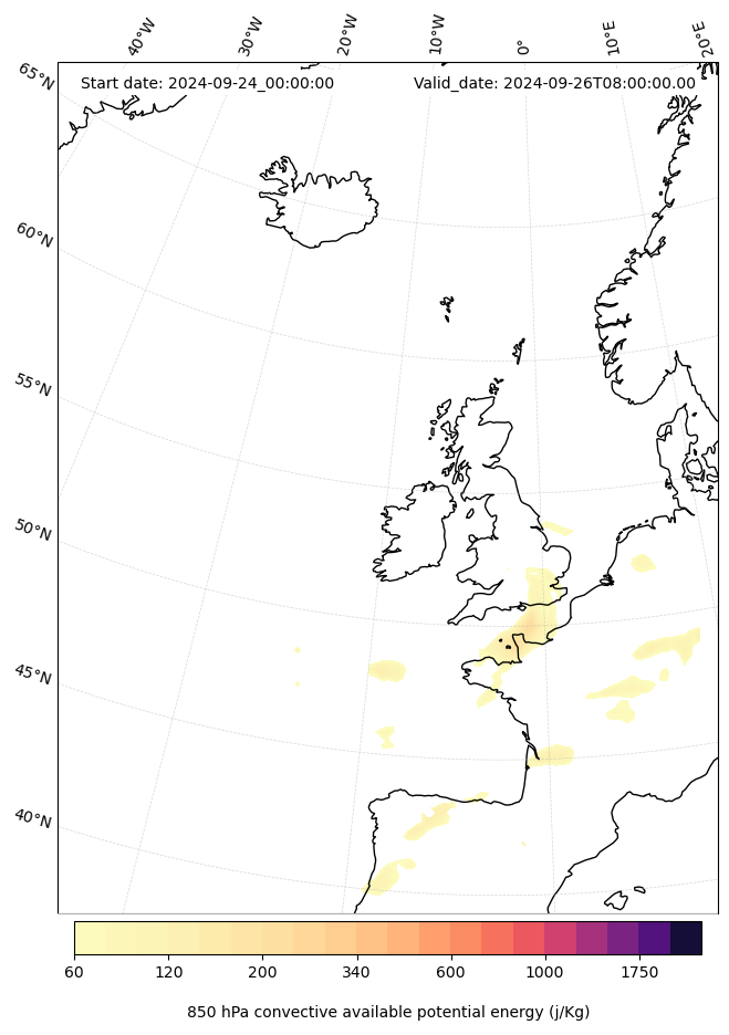 - Maximum CAPE (J/Kg)