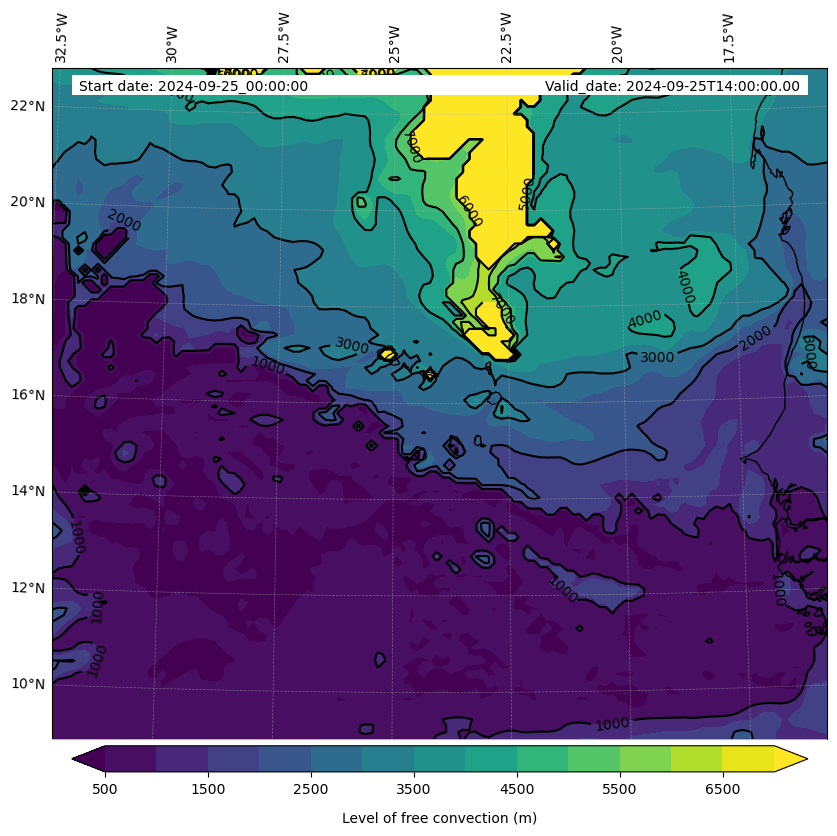 - Level of free convection (m)