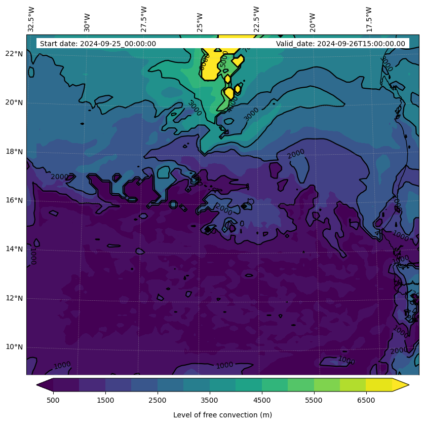 - Level of free convection (m)