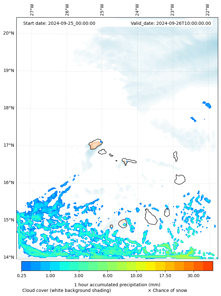 - Snow mixing ratio (g kg¯¹)