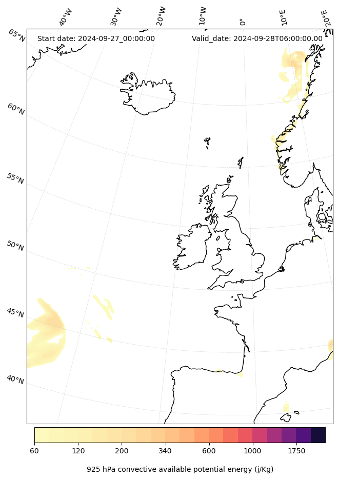 - Maximum CAPE (J/Kg)