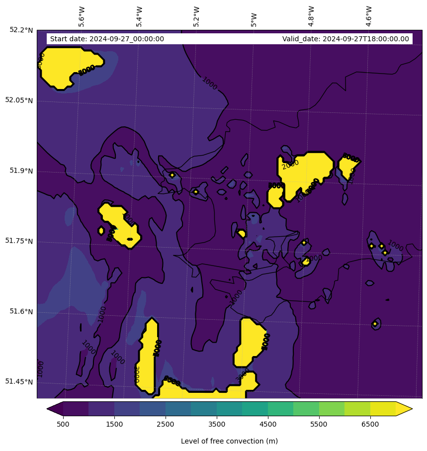- Level of free convection (m)
