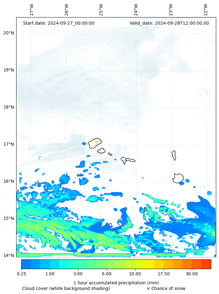 - Snow mixing ratio (g kg¯¹)