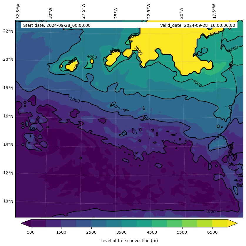 - Level of free convection (m)