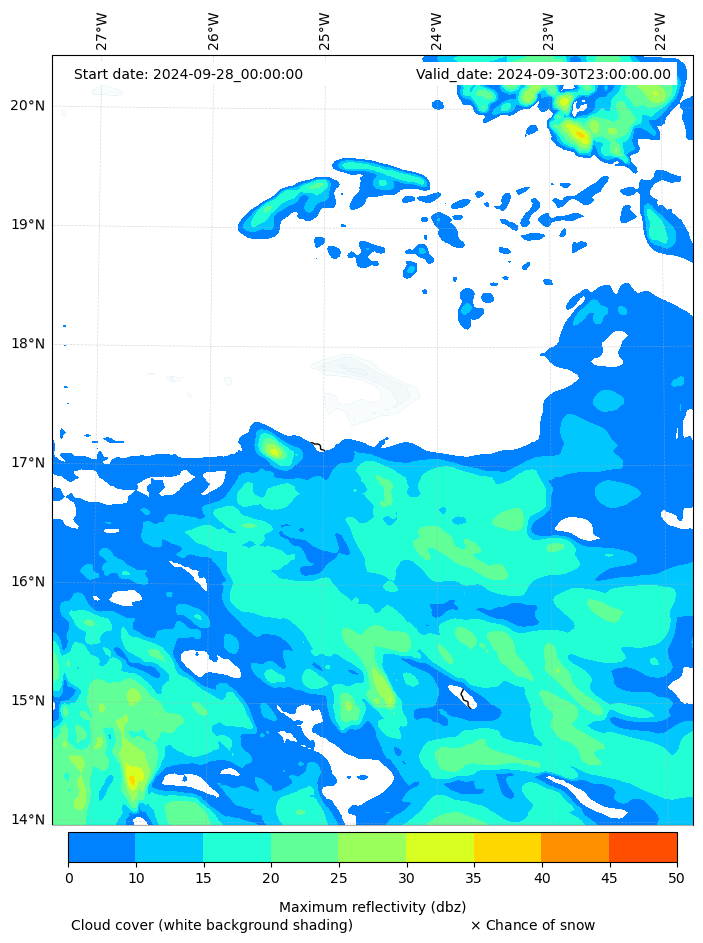 - Snow mixing ratio (g kg¯¹)