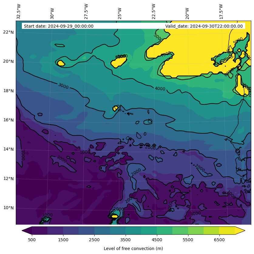 - Level of free convection (m)