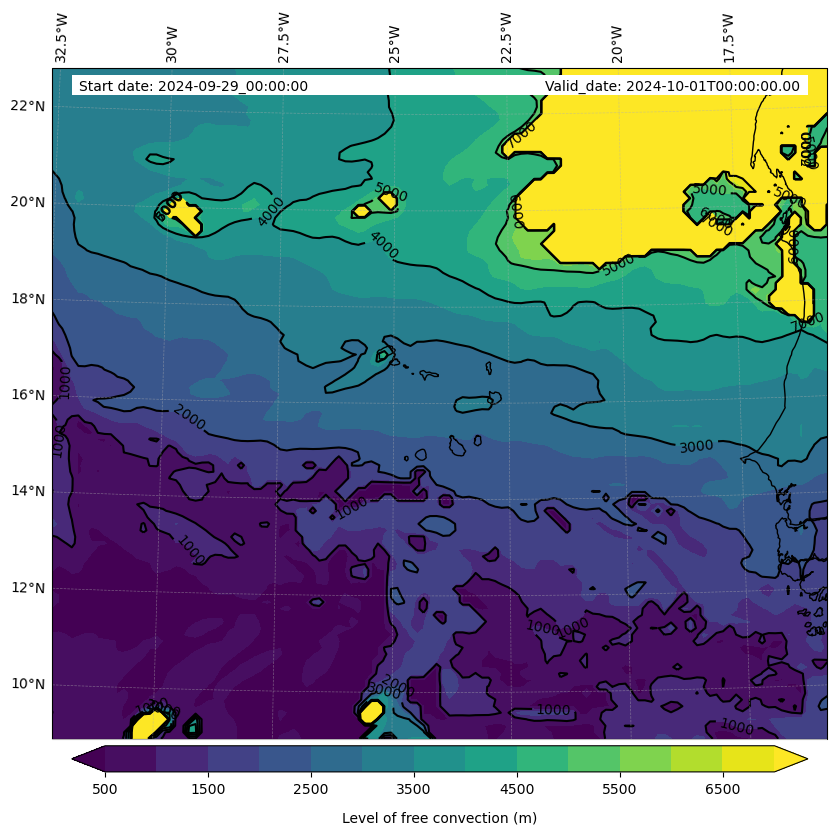 - Level of free convection (m)