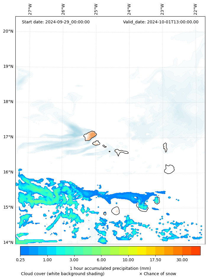 - Snow mixing ratio (g kg¯¹)