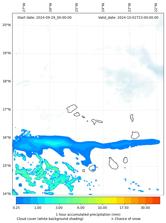 - Snow mixing ratio (g kg¯¹)