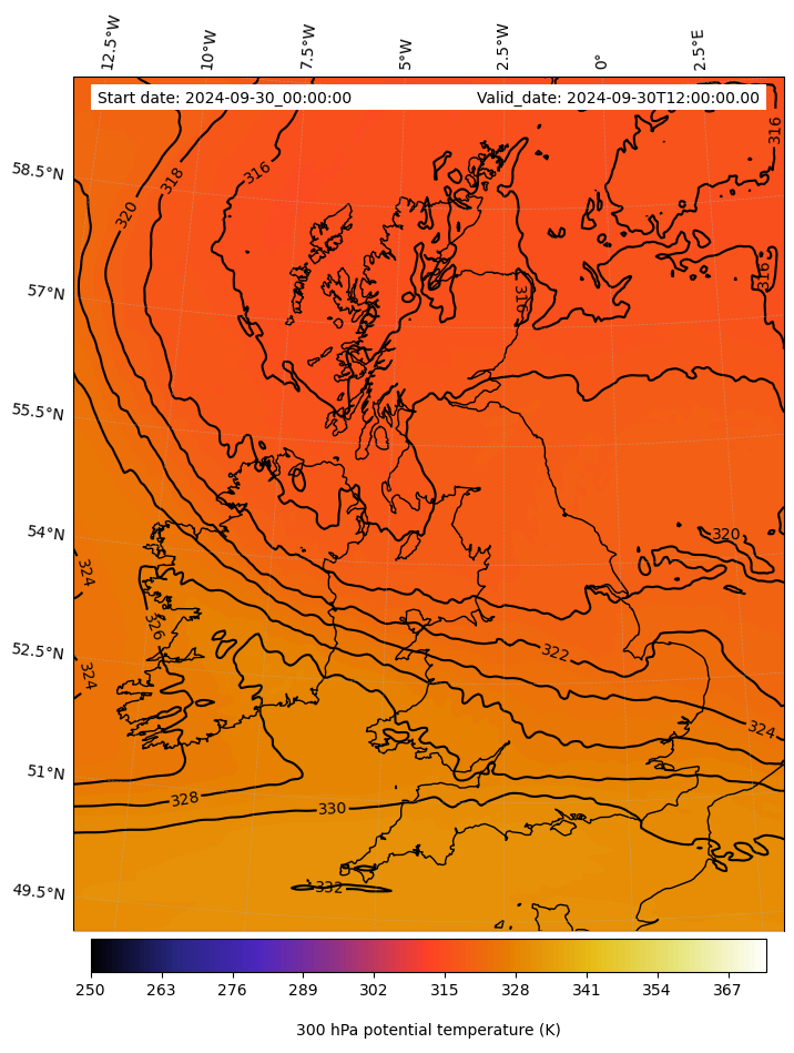 - Equivalent Potential Temperature (K)- 300 hPa