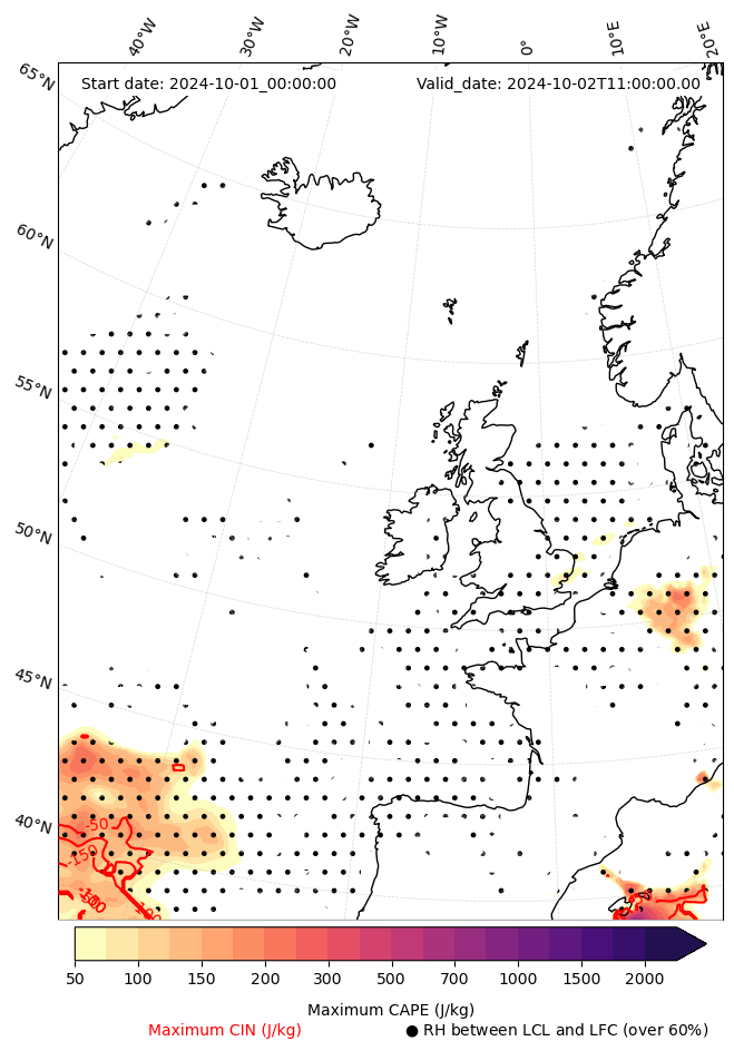 - Maximum CAPE (J/Kg)