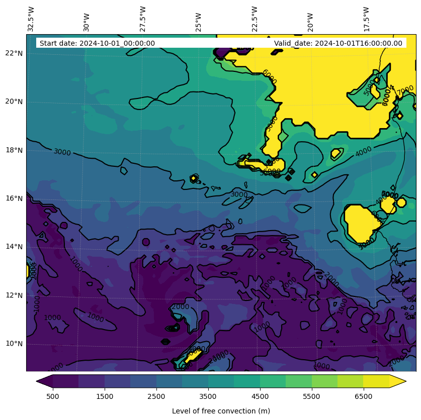 - Level of free convection (m)