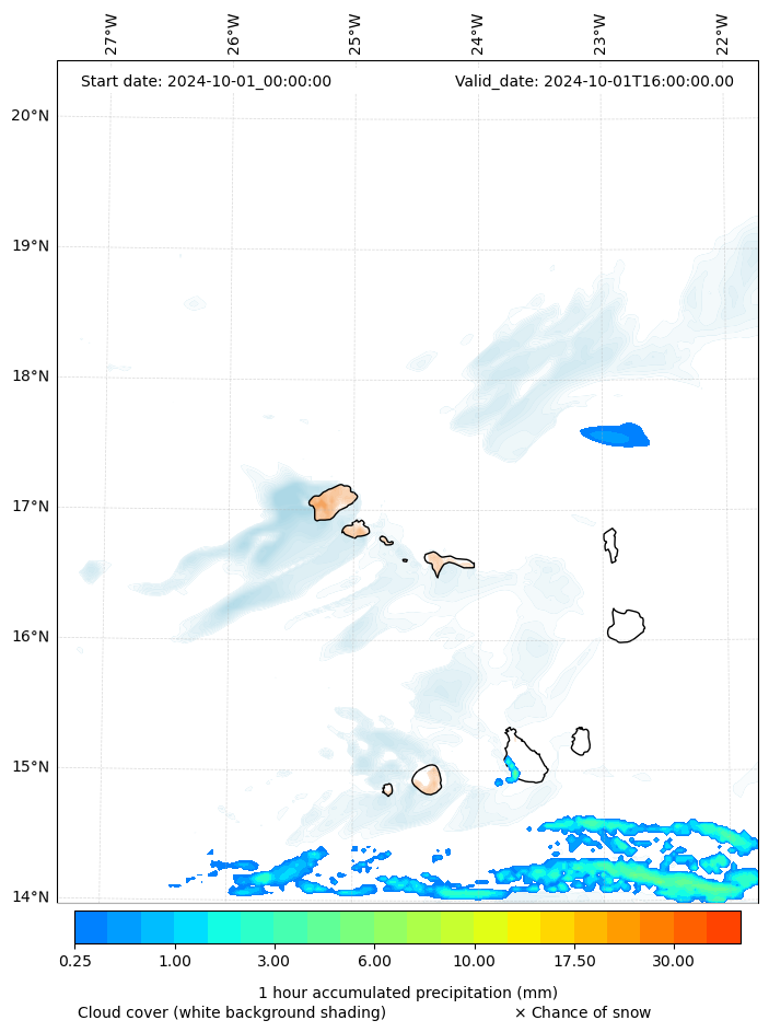 - Snow mixing ratio (g kg¯¹)