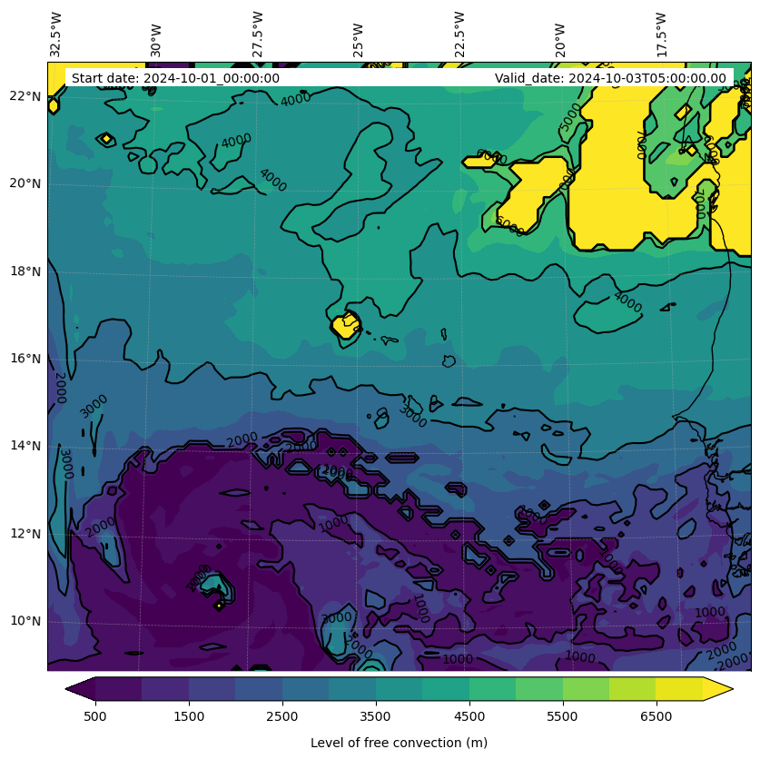 • Level of free convection (m)