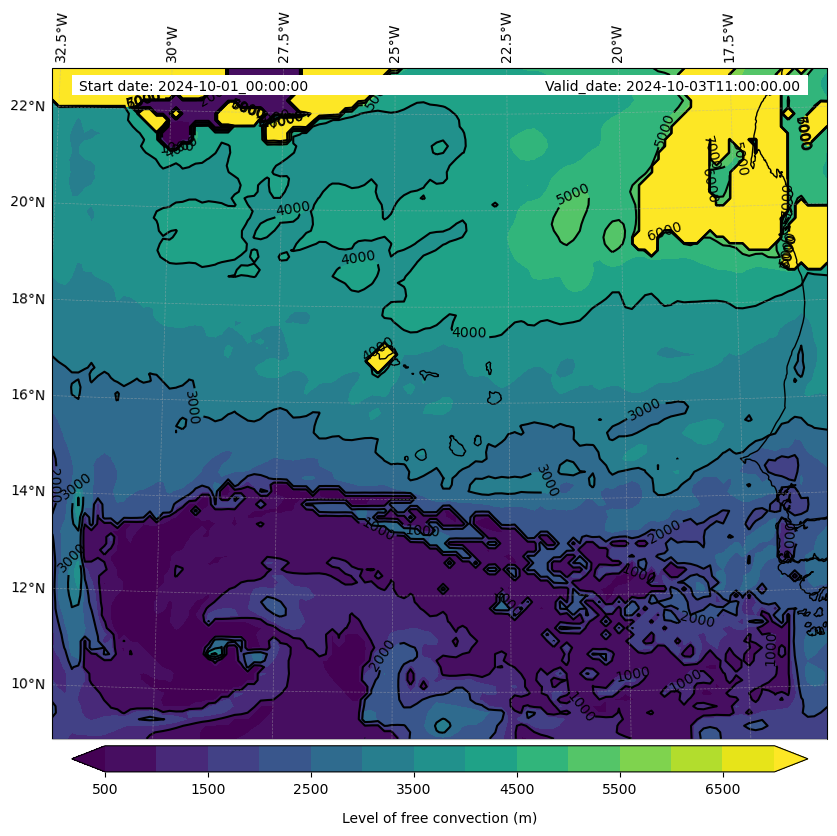 • Level of free convection (m)