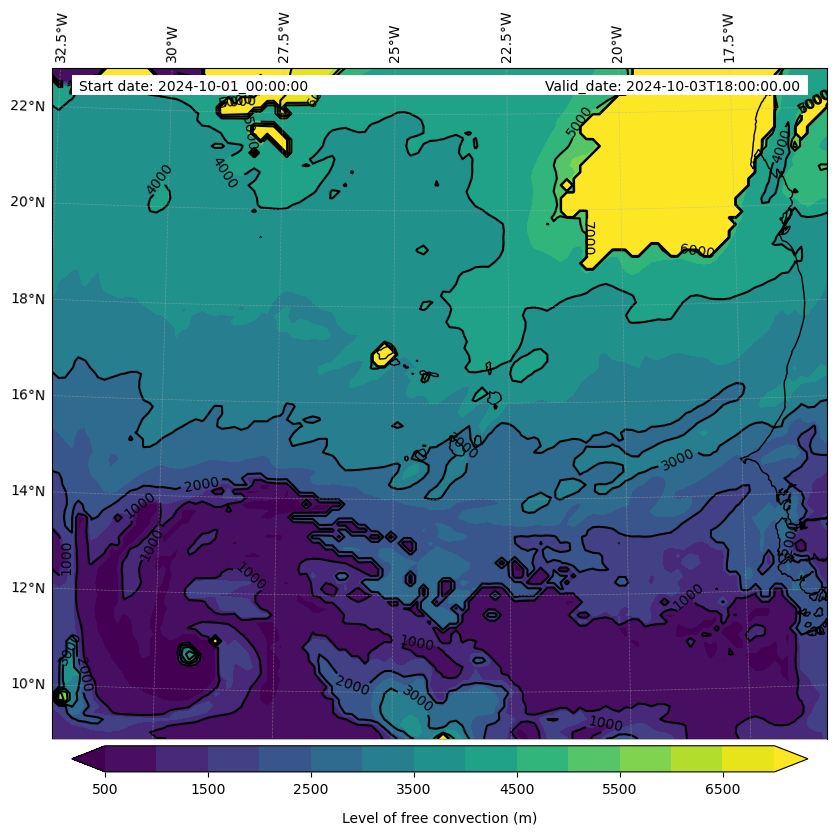 - Level of free convection (m)