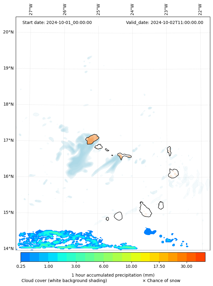 - Snow mixing ratio (g kg¯¹)