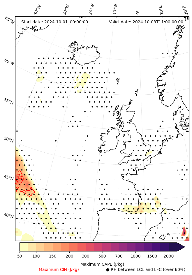 • Maximum CAPE (J/Kg)