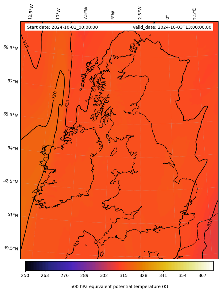 - Equivalent Potential Temperature (K)