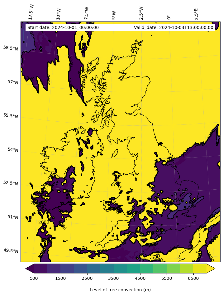 - Level of free convection (m)