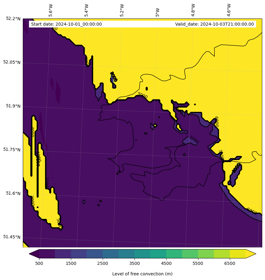 - Level of free convection (m)