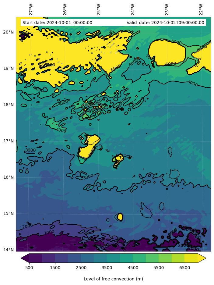 - Level of free convection (m)