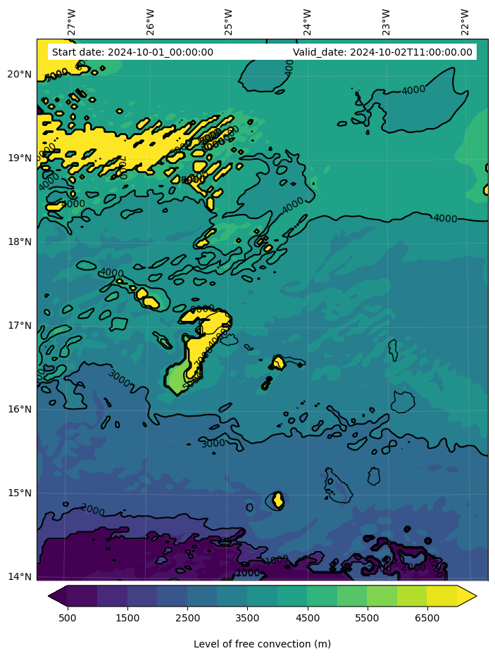- Level of free convection (m)