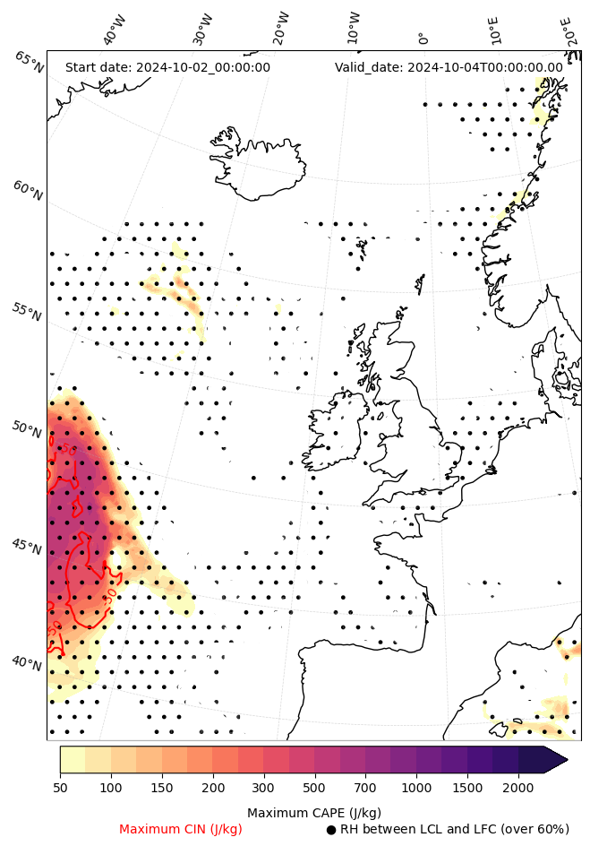 • Maximum CAPE (J/Kg)