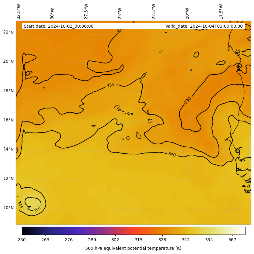 - Equivalent Potential Temperature (K)