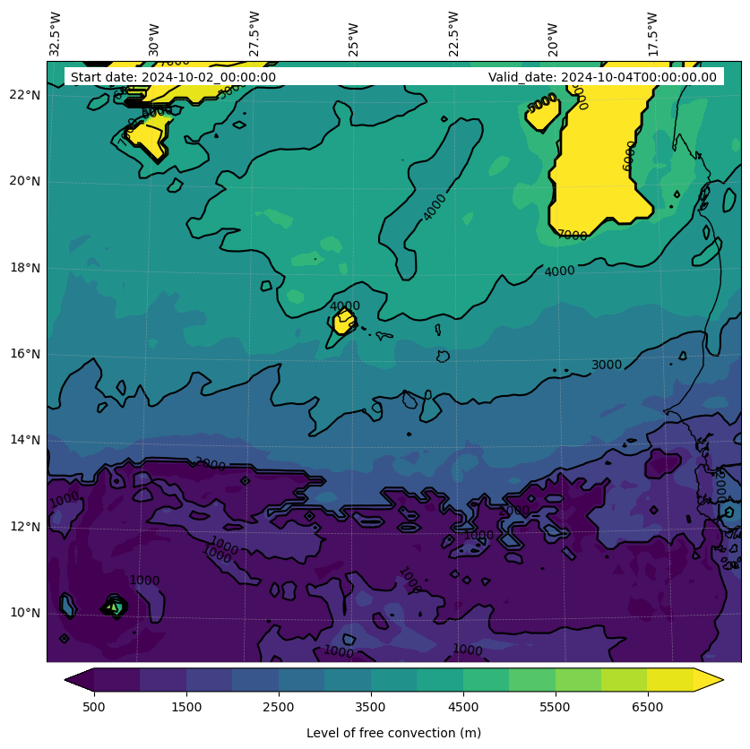 - Level of free convection (m)