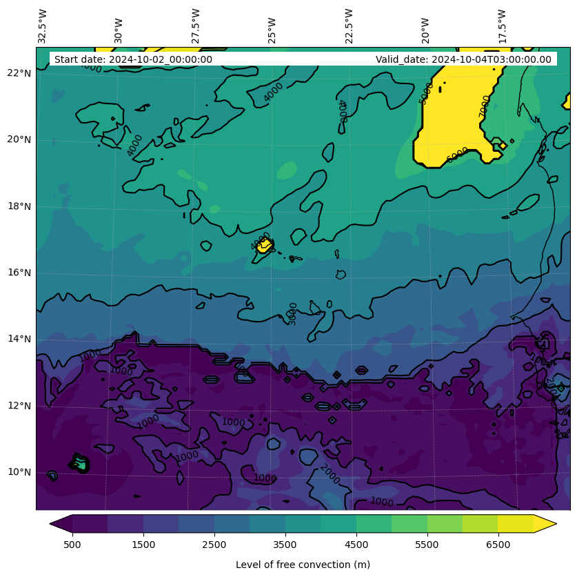 - Level of free convection (m)