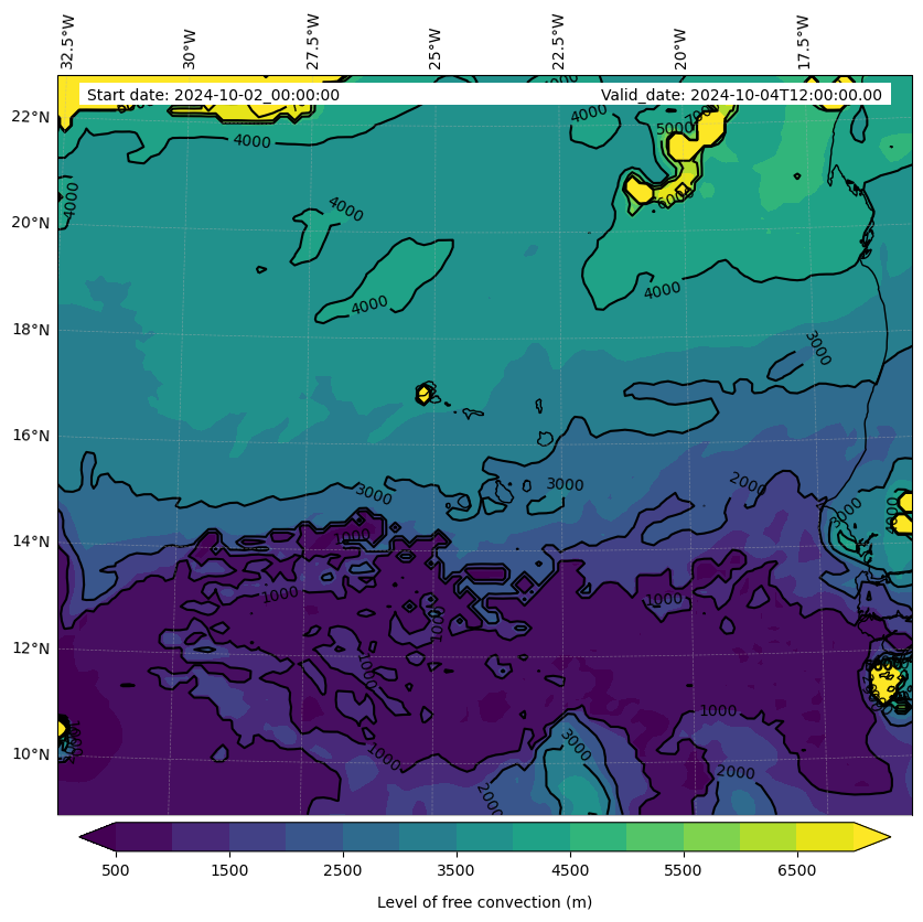 - Level of free convection (m)