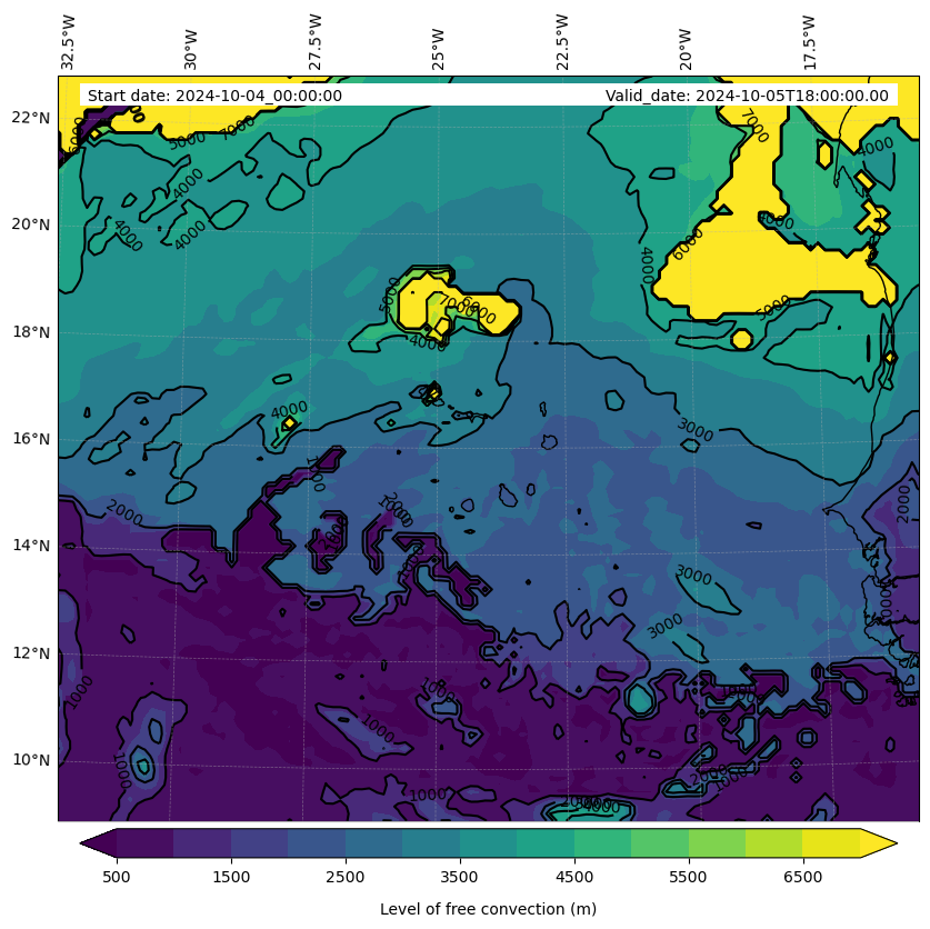 - Level of free convection (m)