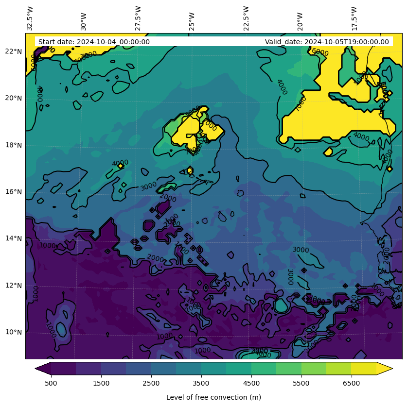 - Level of free convection (m)