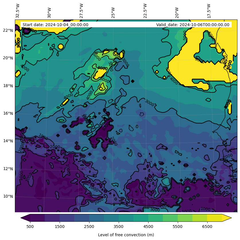 • Level of free convection (m)