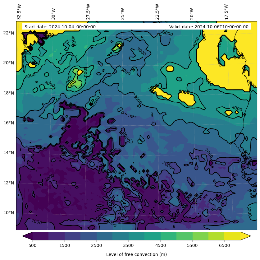 - Level of free convection (m)