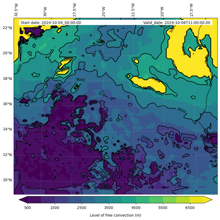 - Level of free convection (m)